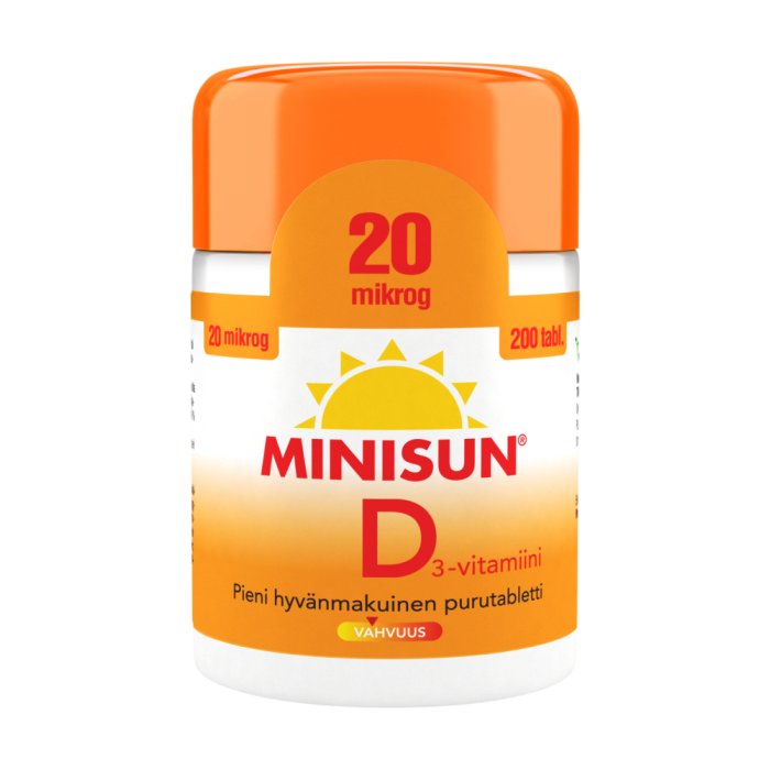 Minisun D-vitamiini 20 mikrog 200 tabl